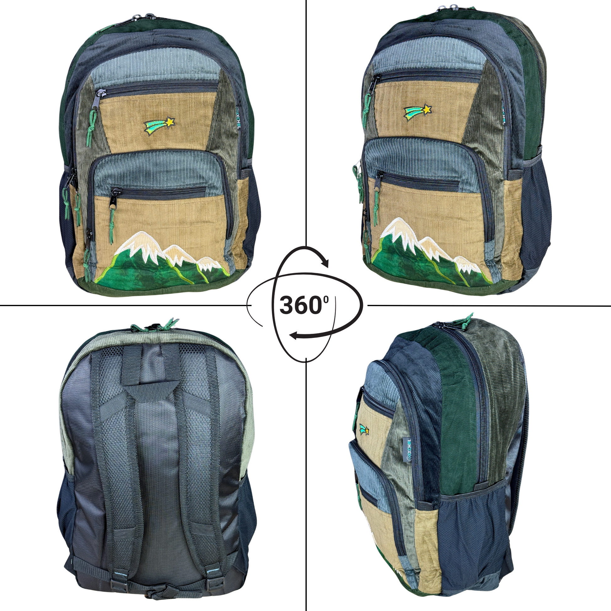 Patchwork Corduroy Backpack with Mountain Embroidered Applique