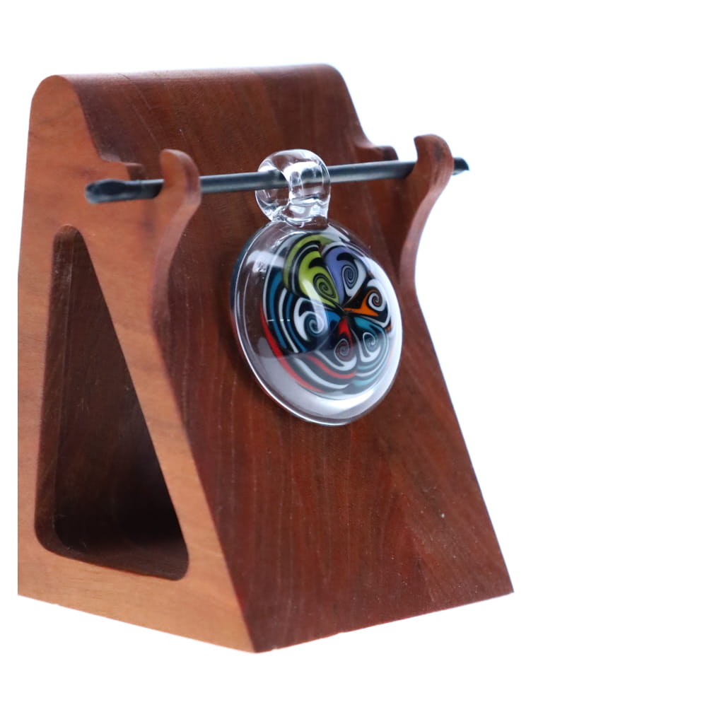 Chunk Glass Thumbprint Disk Rainbow Pendant #3