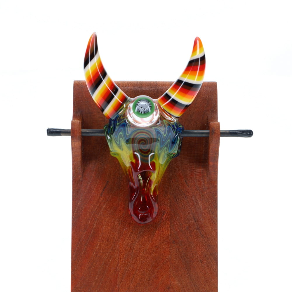 Chunk Glass X Cowboy Glass Green & White Millie Horned Skull Pendant