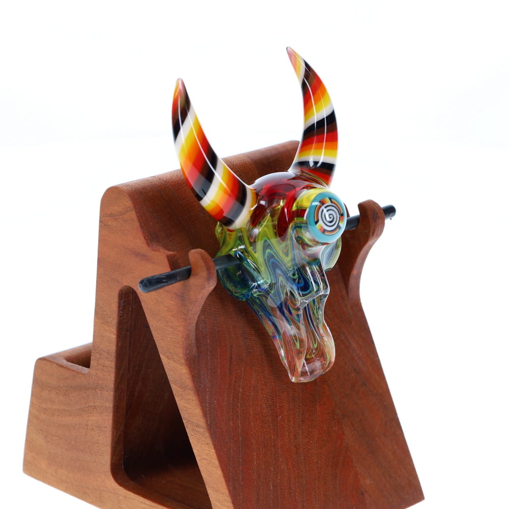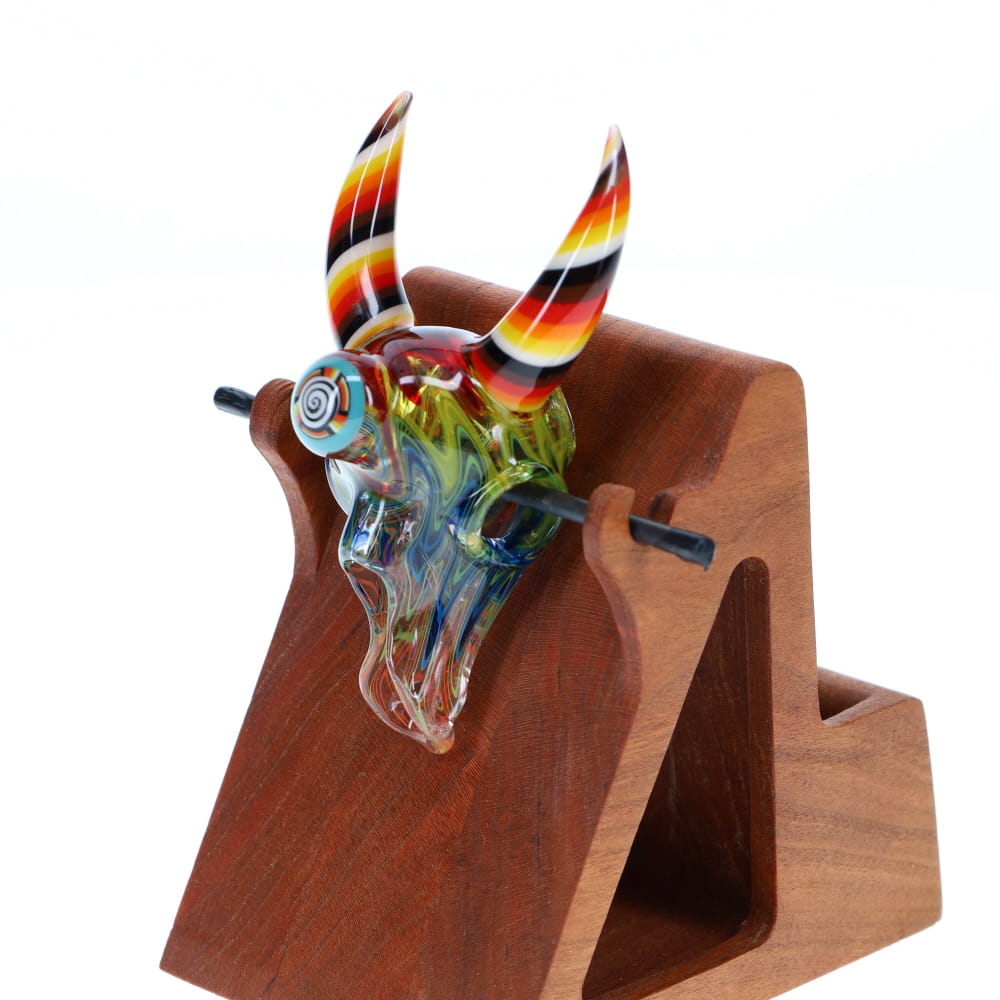 Chunk Glass X Cowboy Glass Rainbow Horned Skull Pendant