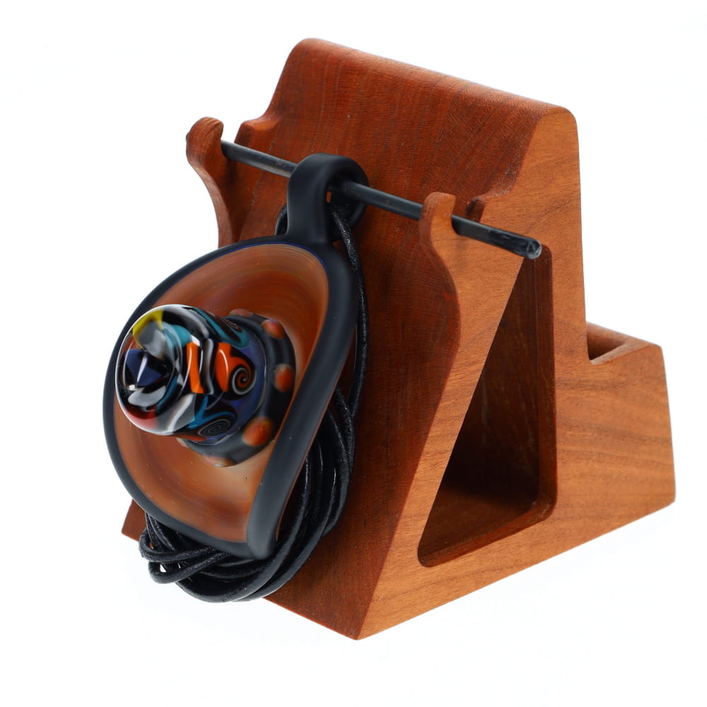 Chunk Glass X Cowboy Glass Worked Top Brown Hat w/ Black Trim Pendant