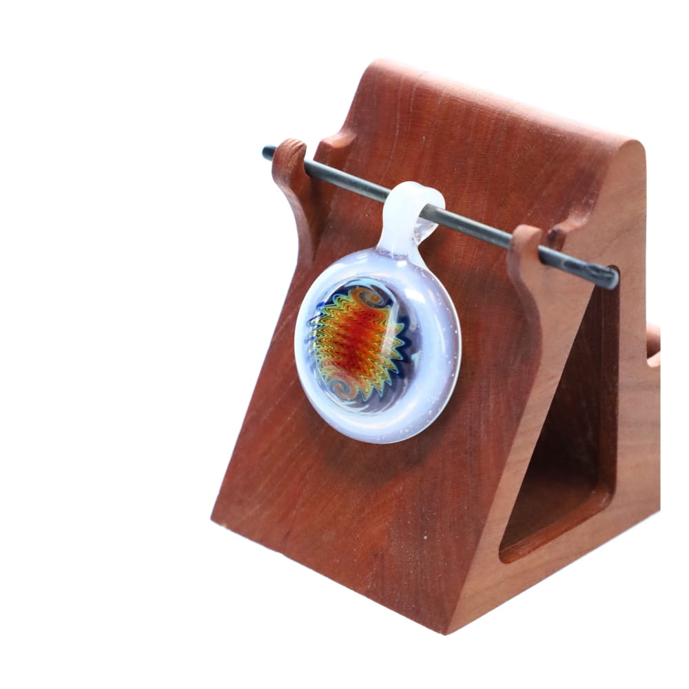 Cowboy Glass Disc Pendant with Light Blue Rim and Wig Wag Rainbow Center