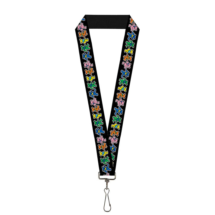 This lanyard is made out of stretchy polyester, and has a steel clip to easily detach your keys. Show off your favorite character or brand with our awesome lanyard! The lanyard is 1.0 Inch wide, and a standard length. This product is Made in USA by Buckle-Down, Inc. and Officially Licensed by Grateful Dead.