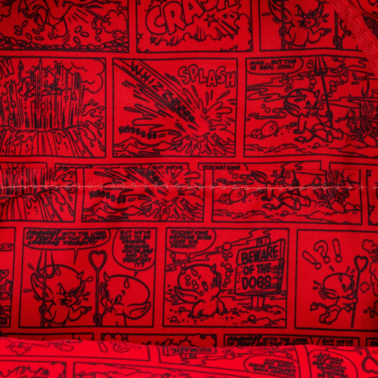This mini backpack is inspired by Hot Stuff, the Little Devil from Casper the Friendly Ghost. He takes shape on the front of the bag with frosted transparent PVC and debossed details. You'll find a pitchfork charm as the zipper pull on the front pocket. Embroidered flames are on the side pockets. More flames appear on the straps, and you can find a heart with devil horns and a tail on the back that says ""Hot Stuff."