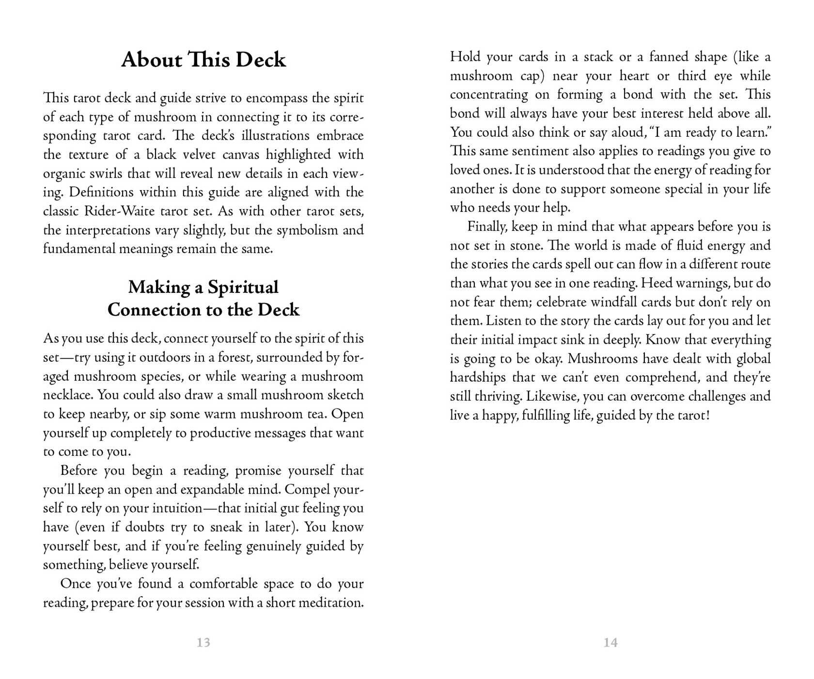 These ethereal illustrations were created by Eisner Award–nominated artist and mushroom enthusiast Sara Richard whose art is inspired by the natural world and the trees and mushrooms she was surrounded by while growing up in New Hampshire. This deck is filled with magical artwork reflecting the hidden power, magic, and wonder of the woods. So whether you’re an avid mushroom hunter or you just want to add some earthy magic to your tarot card practice, this deck is for you.