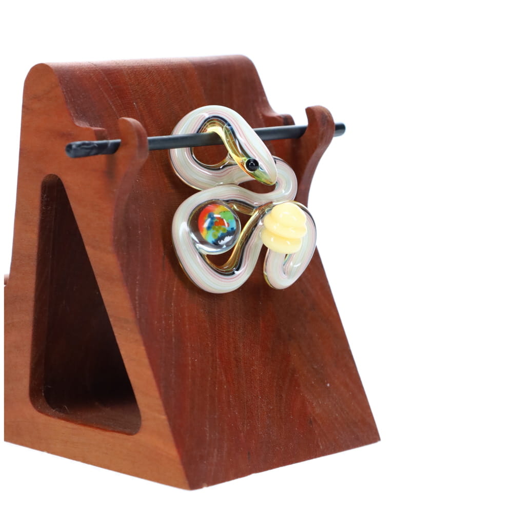 A collaboration piece made together at the Loop 420 Street Fest in St. Louis. A combination of Niko's signature snake sculpting, with tubing and millie from Cowboy Glass and an ice cream cone tail from Chunk Glass.