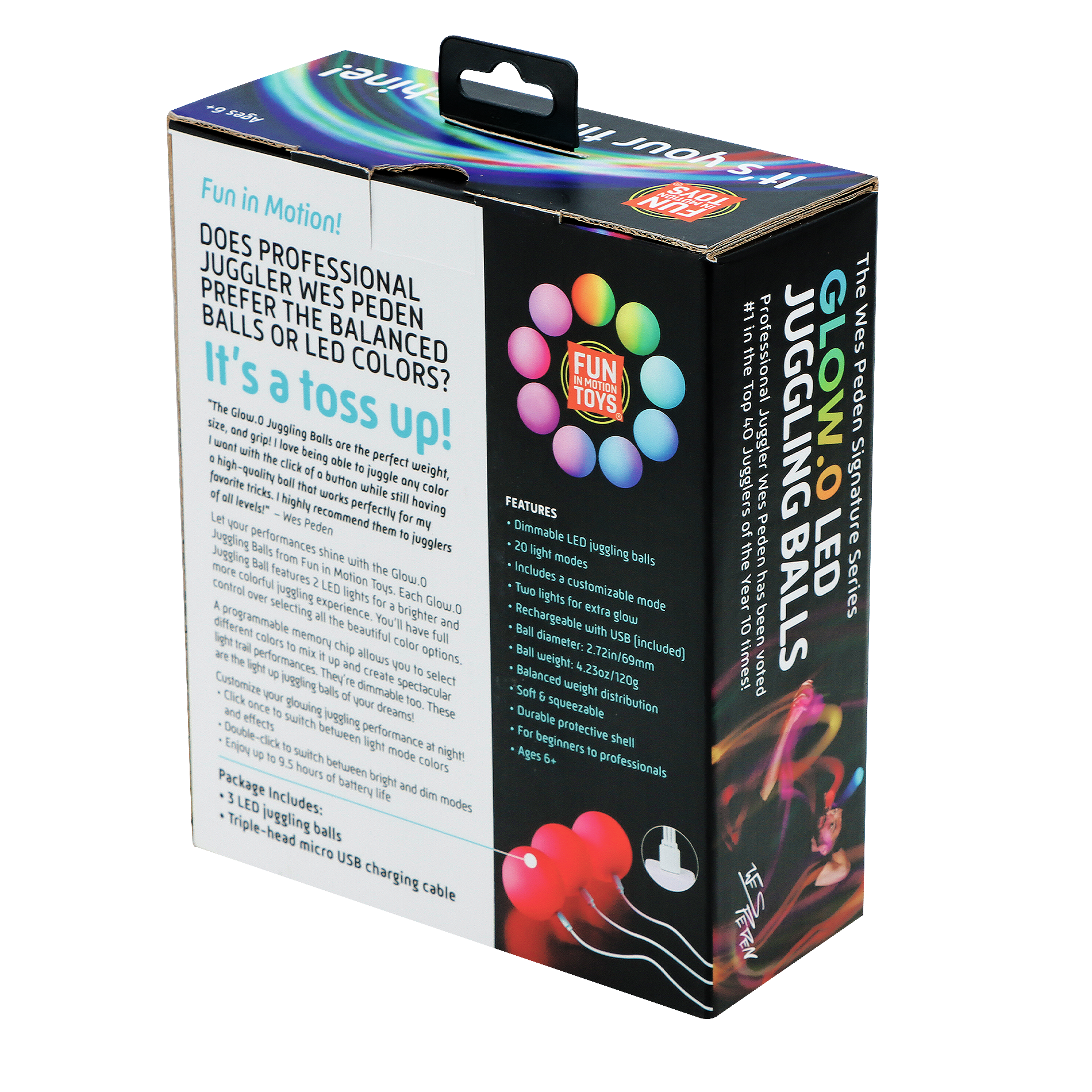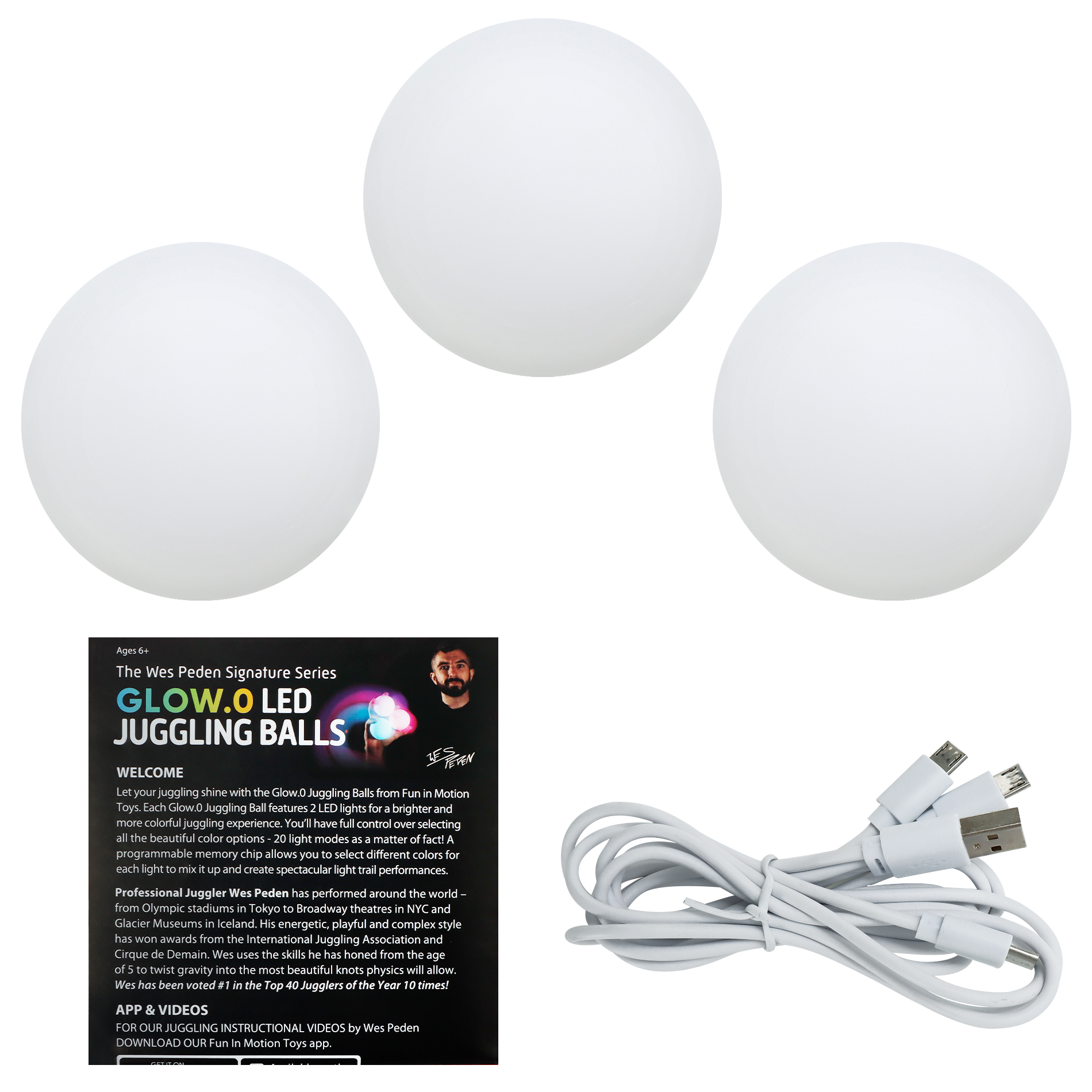 Each Glow.0 Juggling Ball features 2 LED lights for a brighter and more colorful juggling experience. You’ll have full control over selecting all the beautiful color options or customizing your light modes. A programmable memory chip allows you to select different colors for each light to mix it up and create spectacular light trail performances.
